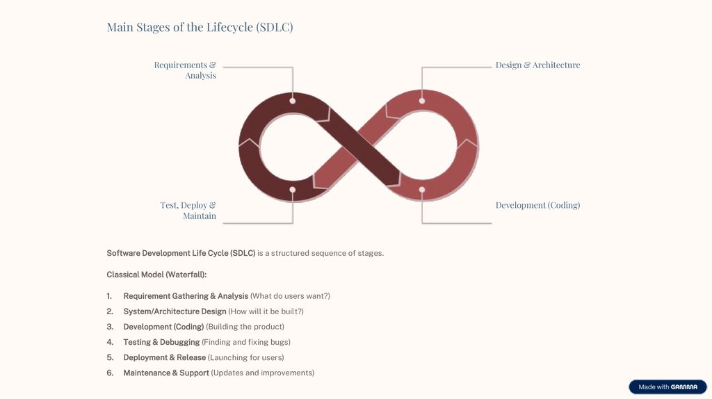 Main Stages of the Lifecycle (SDLC)Requirements &