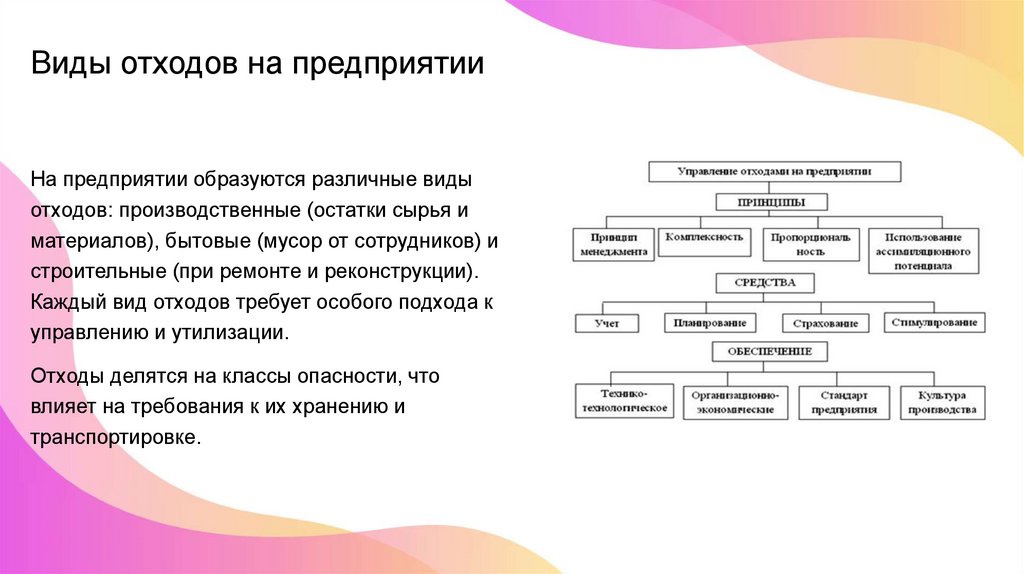 Виды отходов на предприятииНа предприятии образуются различные виды