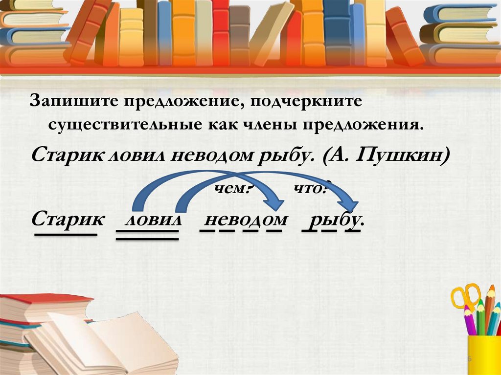 Запишите предложение, подчеркнитесуществительные как члены предложения.