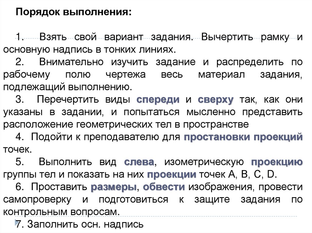 Порядок выполнения:1. Взять свой вариант задания. Вычертить рамку и
