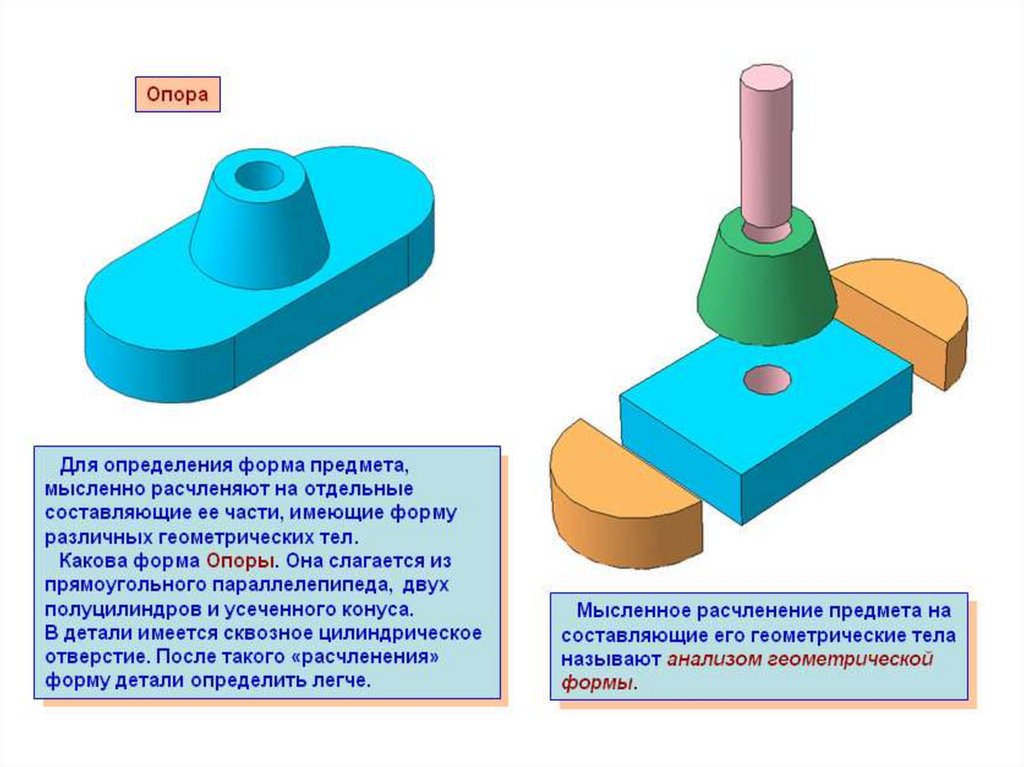 Перечислите простые геом. тела, составляющие данные детали:Для чего нужен анализ геометрической формы предмета?