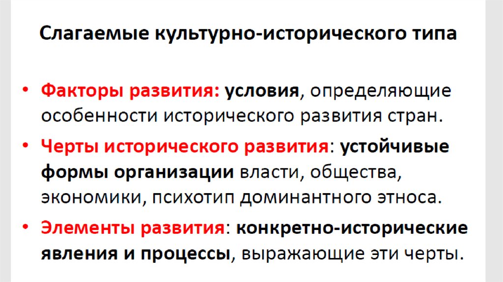 • Культурно-исторический (цивилизационный)
