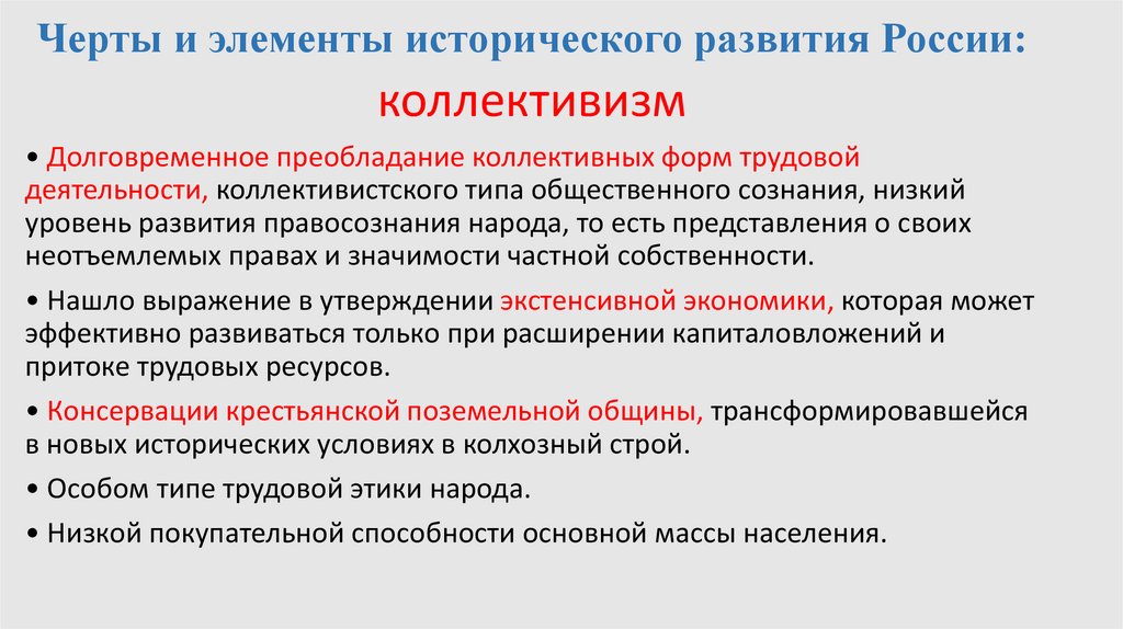 Черты и элементы исторического развития России:коллективизм