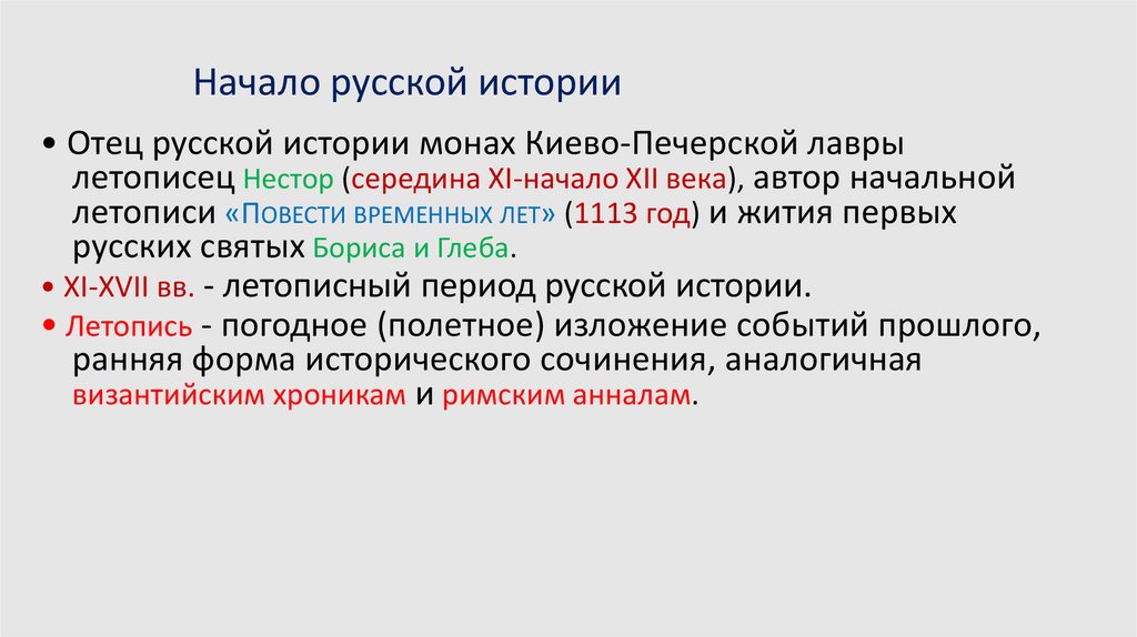 Начало русской истории• Отец русской истории монах Киево-Печерской лавры
