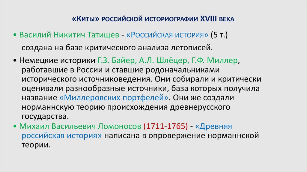 • Немецкие историки Г.З. Байер, А.Л. Шлёцер, Г.Ф. Миллер,