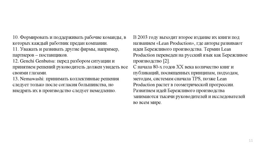 Последние десятилетия все большее распространение получает развитие идей, принципов, методови инструментов бережливого производства.