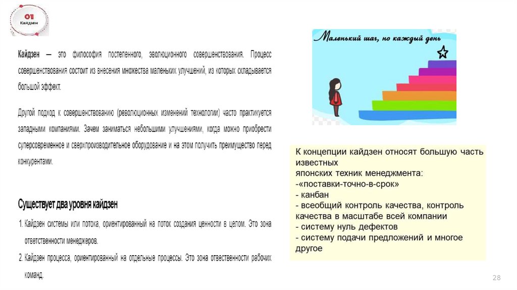 внедрением бережливой концепции в практику своей деятельности (около 90 % компаний в Японии,