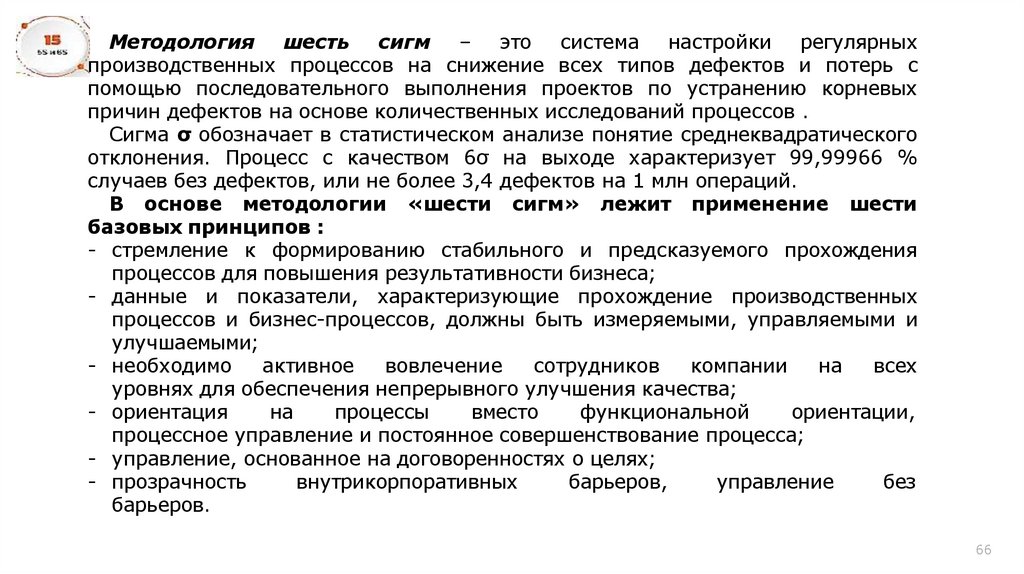 67. МЕТОДОЛОГИЯ ШЕСТЬ СИГМ