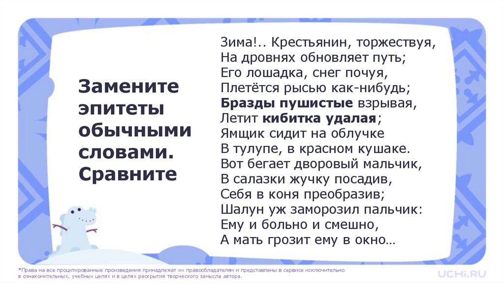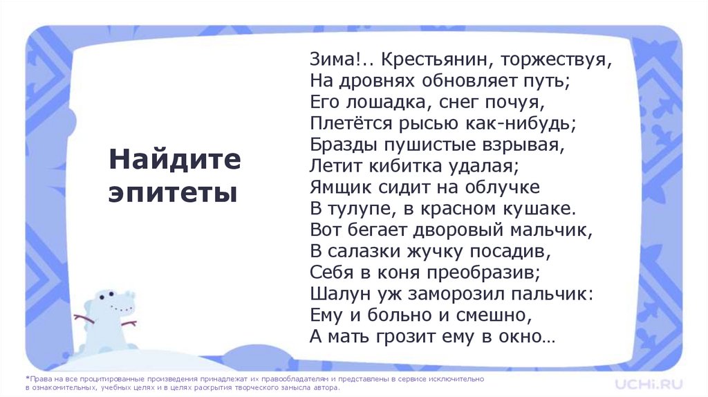 «Зима!.. Крестьянин, торжествуя…» эпитеты