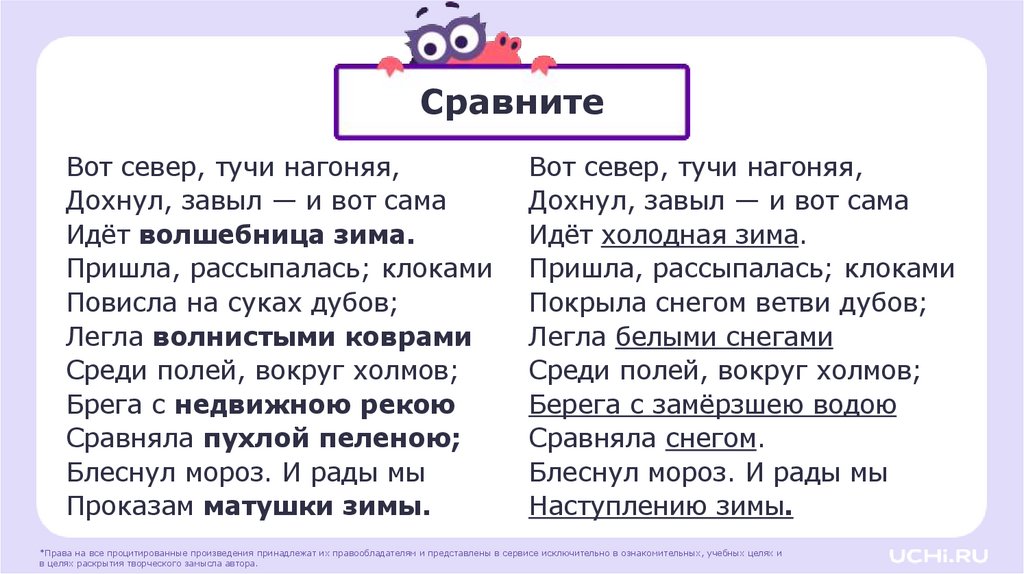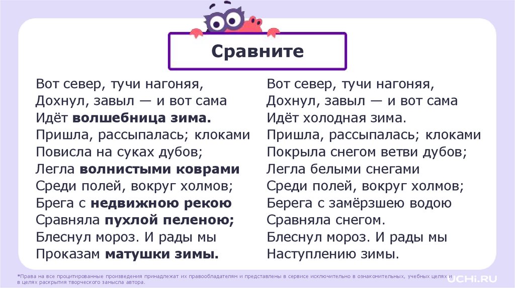 Находить в тексте стихотворения А. С. Пушкина