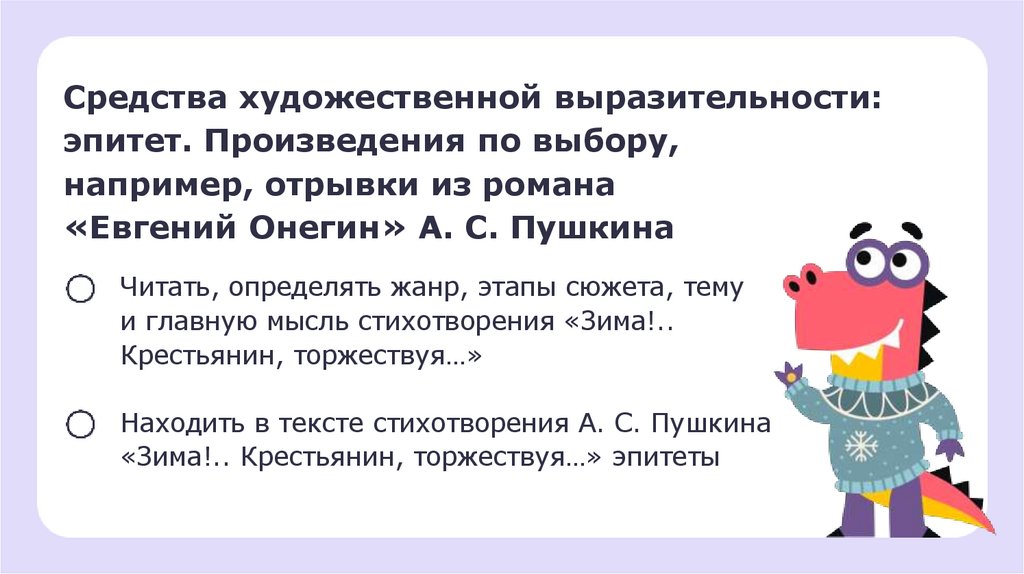 Литературное чтение, 2 класс, Средства художественной выразительности- эпитет. Произведения по выбору, например, отрывки из романа «Евгени