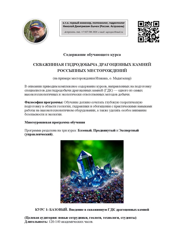 Содержание Курса СКВАЖИННАЯ ГИДРОДОБЫЧА ДРАГОЦЕННЫХ КАМНЕЙ