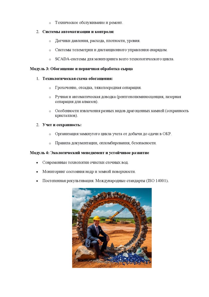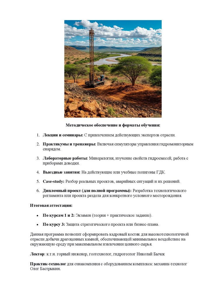 подготовку в области геологии, гидравлики и обогащения с практическими навыками