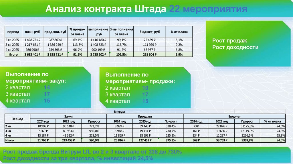 Рост продаж бренда Витрум LfL во 2 и 3 квартале от 338 до 730%