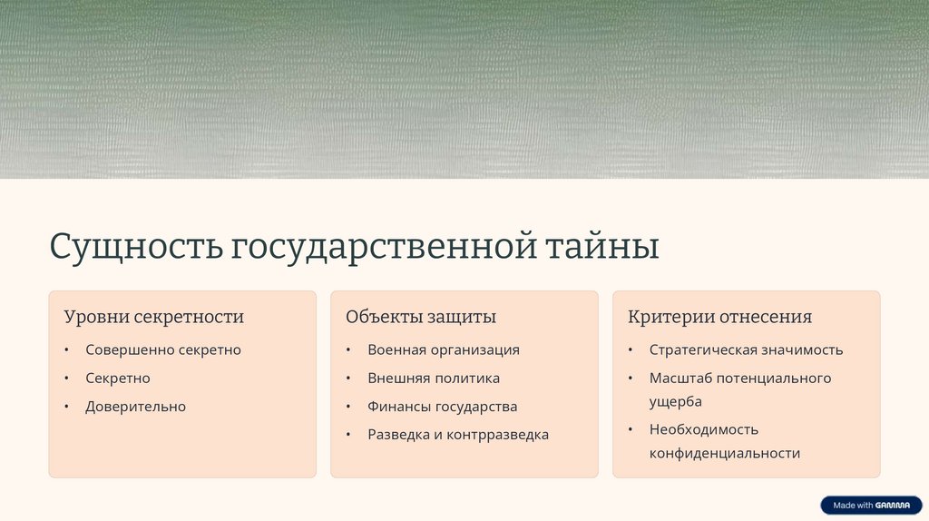 Определены три ключевых вида тайн: государственная, коммерческая, профессиональная.
