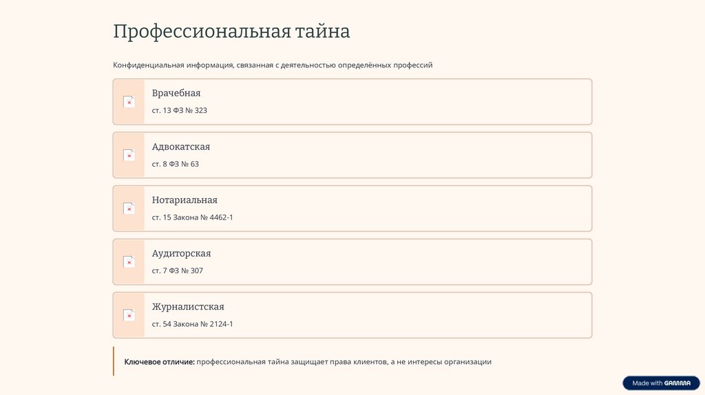 Профессиональная тайнаКонфиденциальная информация, связанная с деятельностью определённых профессий