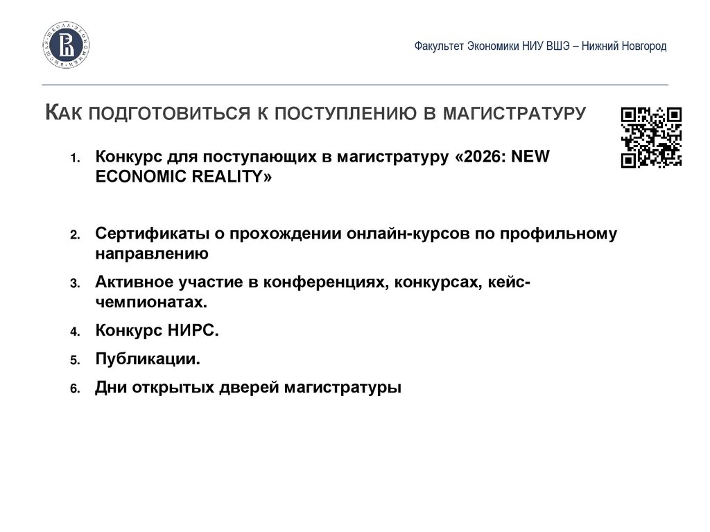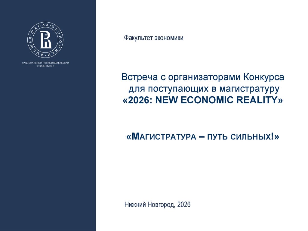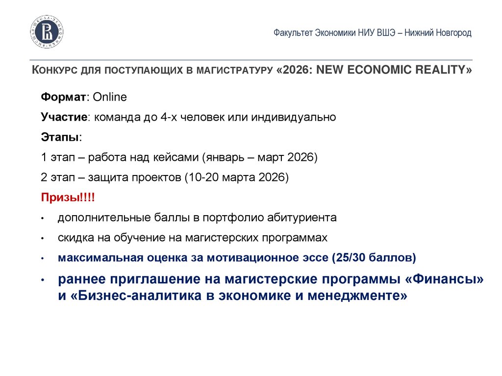 Факультет Экономики НИУ ВШЭ – Нижний НовгородКОНКУРС ДЛЯ ПОСТУПАЮЩИХ В МАГИСТРАТУРУ «2026: NEW ECONOMIC REALITY»