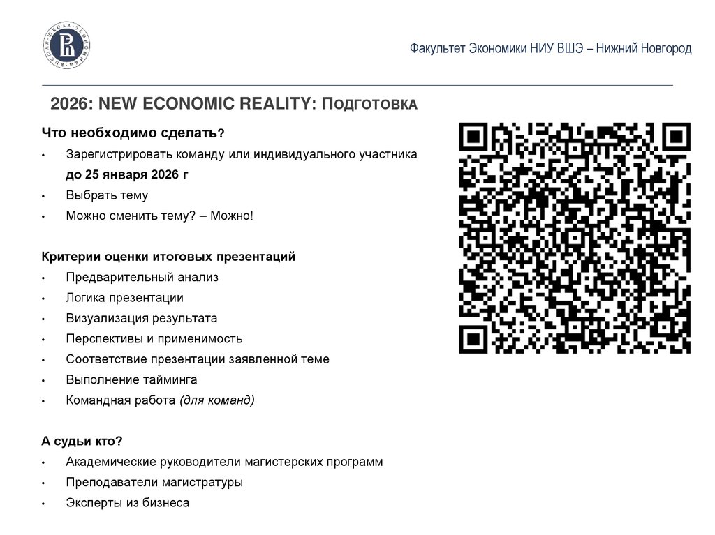 Факультет Экономики НИУ ВШЭ – Нижний Новгород2026: NEW ECONOMIC REALITY: ПОДГОТОВКА