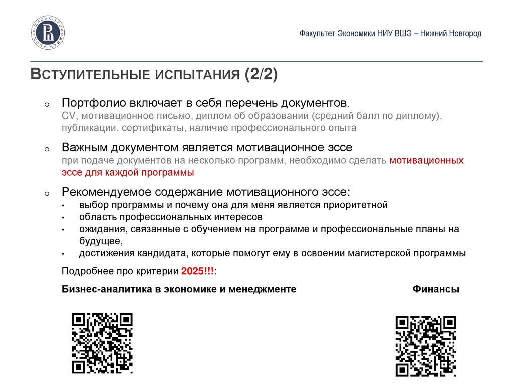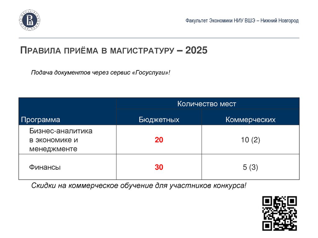 Факультет Экономики НИУ ВШЭ – Нижний НовгородПРАВИЛА ПРИЁМА В МАГИСТРАТУРУ – 2025
