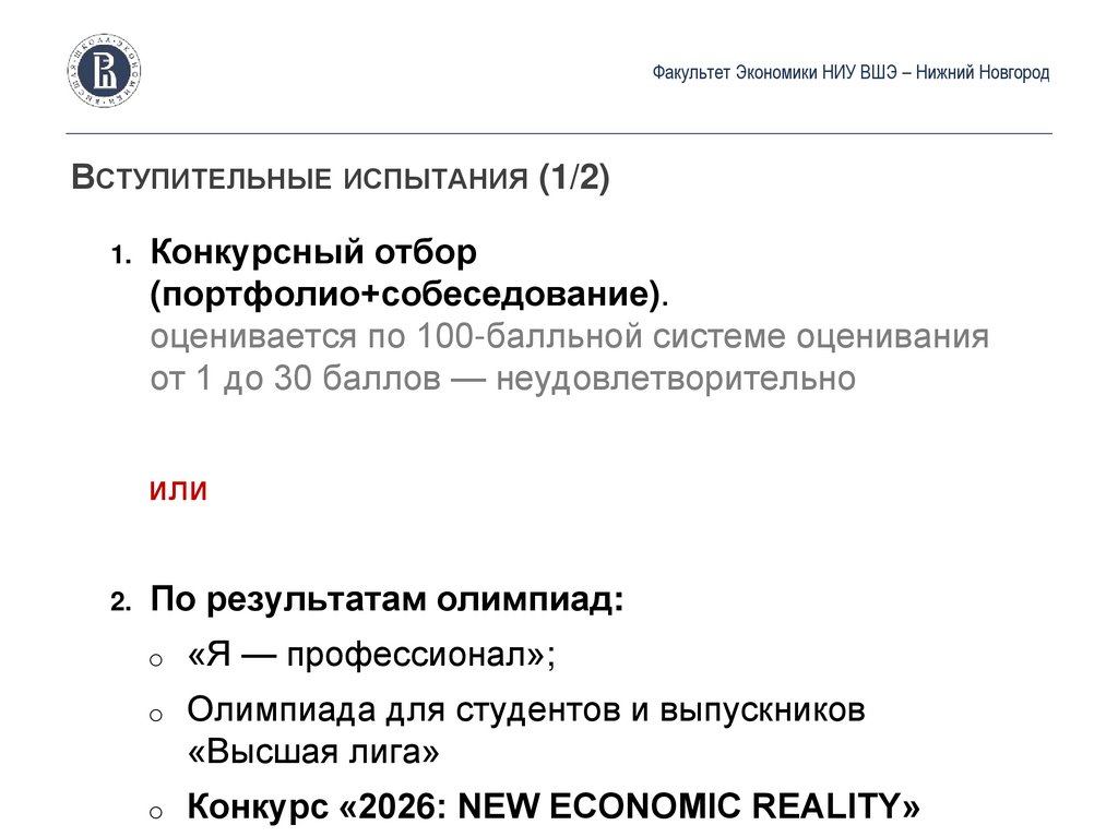 Факультет Экономики НИУ ВШЭ – Нижний НовгородВСТУПИТЕЛЬНЫЕ ИСПЫТАНИЯ (2/2)