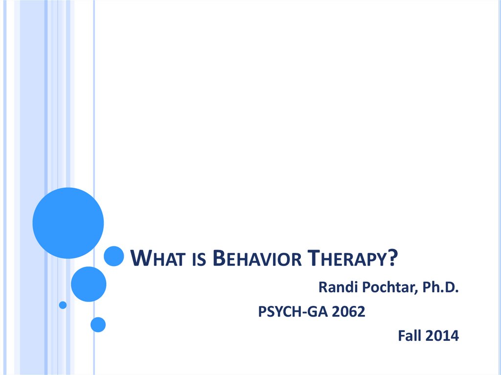 WHAT IS BEHAVIOR THERAPY?Randi Pochtar, Ph.D.