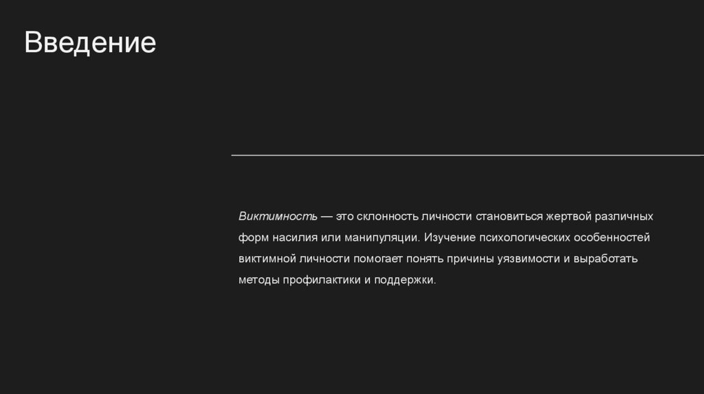 ВведениеВиктимность — это склонность личности становиться жертвой различных