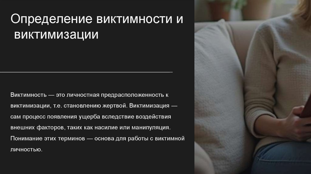 виктимизации, т.е. становлению жертвой. Виктимизация —