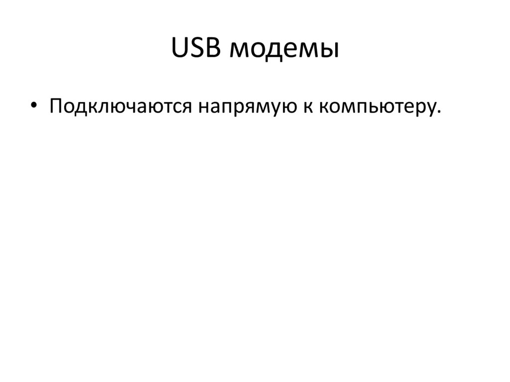 USB модемы• Подключаются напрямую к компьютеру.
