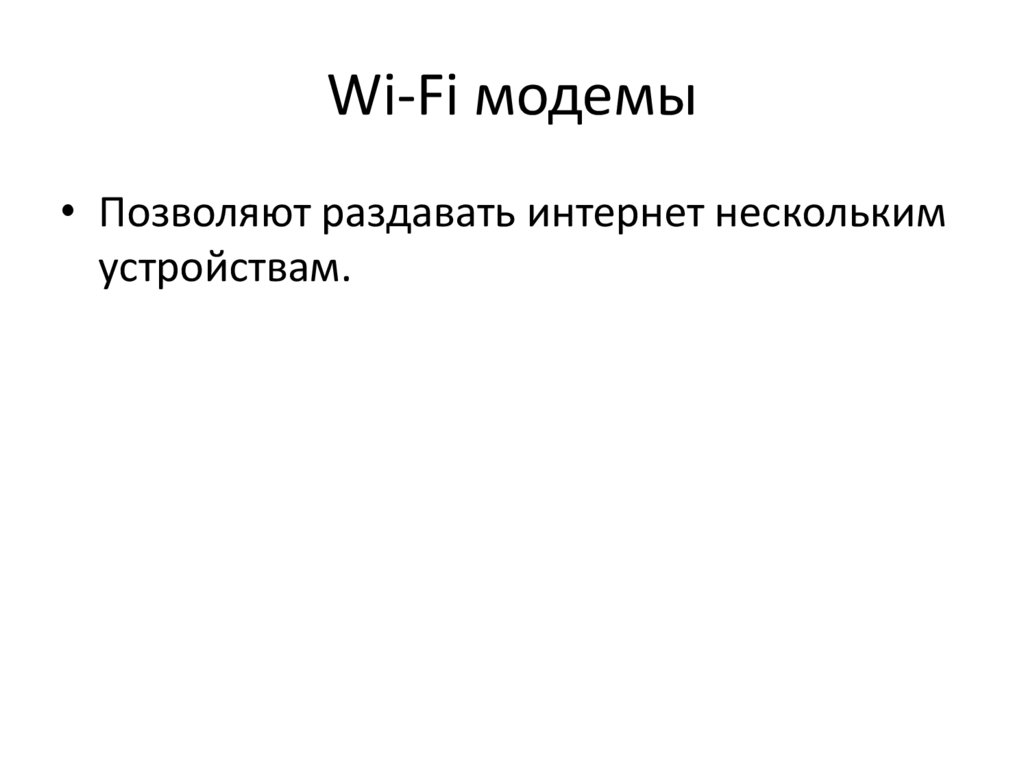 Wi-Fi модемы• Позволяют раздавать интернет нескольким