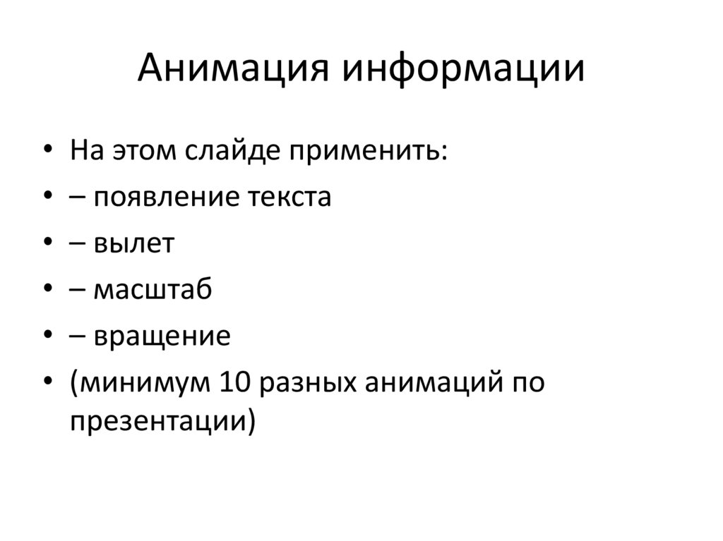 Анимация информации• На этом слайде применить: