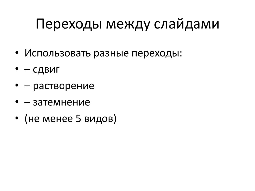 Переходы между слайдами• Использовать разные переходы: