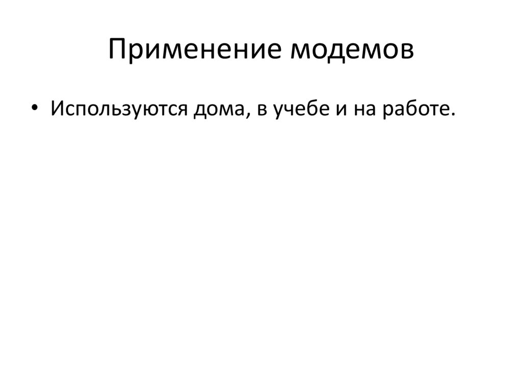 Применение модемов• Используются дома, в учебе и на работе.