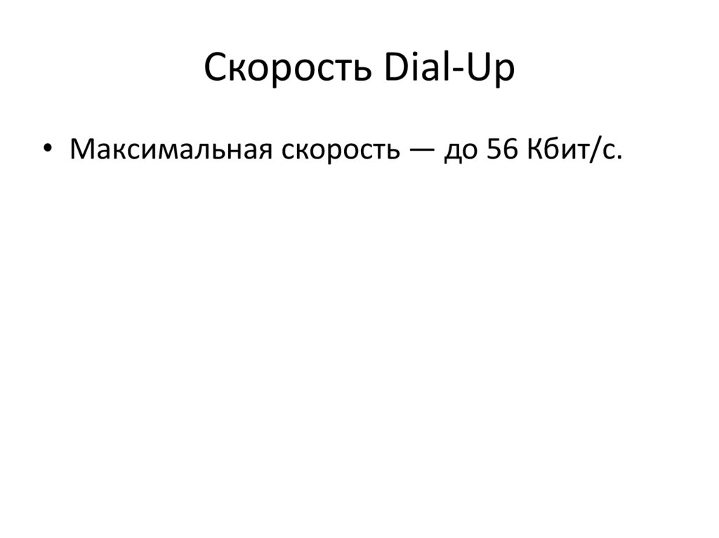 Скорость Dial-Up• Максимальная скорость — до 56 Кбит/с.