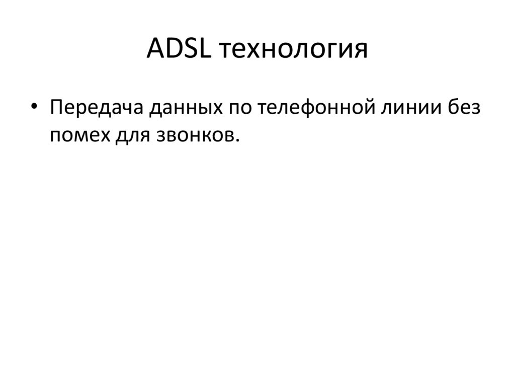 ADSL технология• Передача данных по телефонной линии без