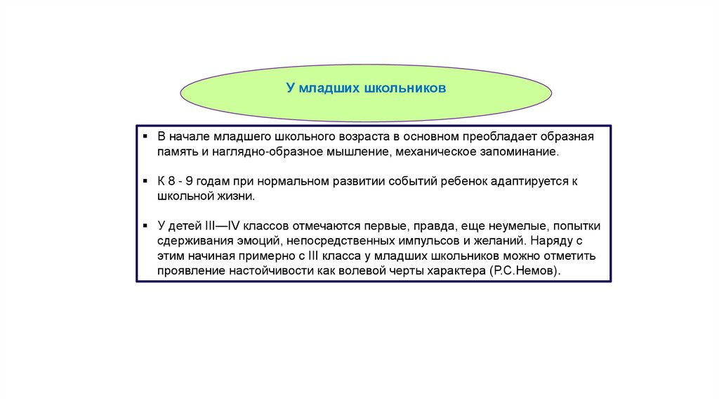 У младших школьниковВ начале младшего школьного возраста в основном преобладает образная
