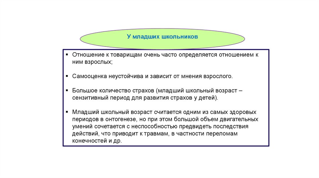 Большое количество страхов (младший школьный возраст –