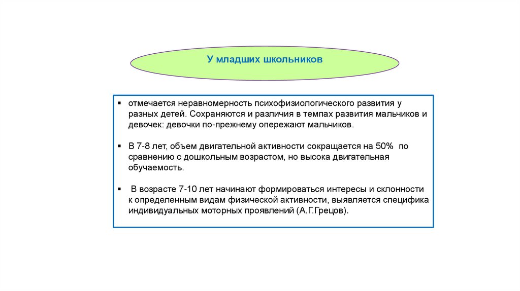 периодов в онтогенезе, но при этом большой объем двигательных