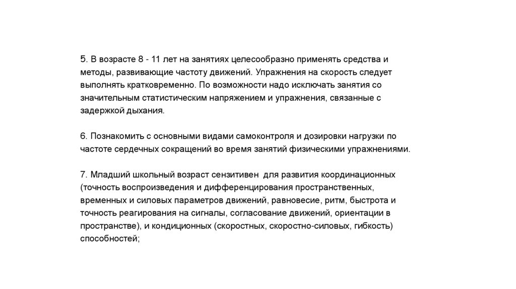 7. Младший школьный возраст сензитивен для развития координационных