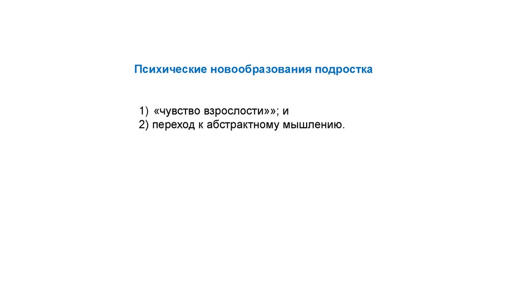 Психические новообразования подростка1) «чувство взрослости»»; и