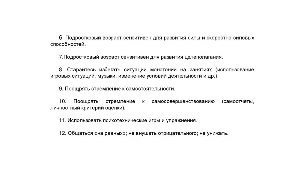 23. Общие рекомендации по учету возрастных психологических особенностей спортсменов -подростков: