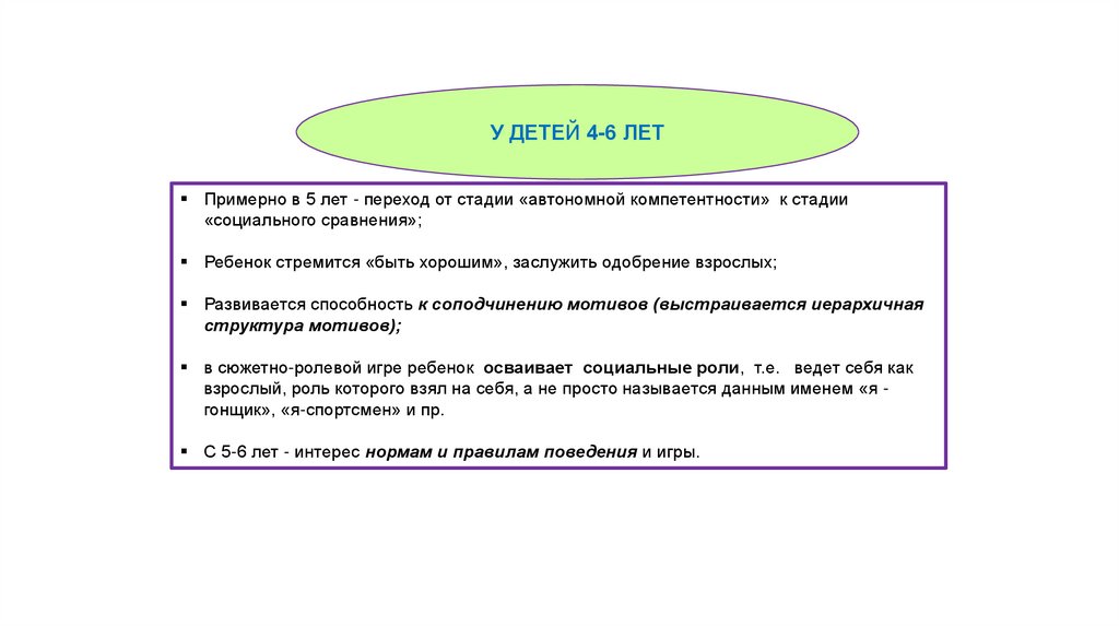 У ДЕТЕЙ 4-6 ЛЕТПримерно в 5 лет - переход от стадии «автономной компетентности» к стадии