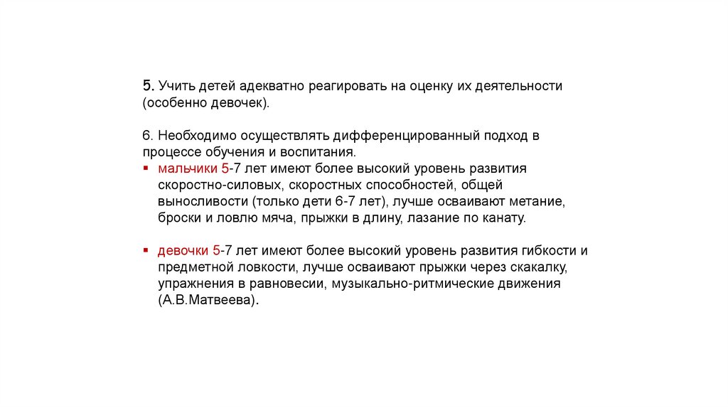 5. Учить детей адекватно реагировать на оценку их деятельности(особенно девочек).
