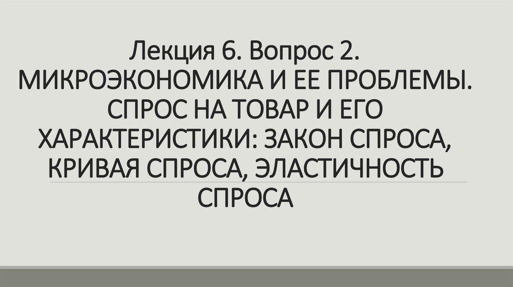 1. Лекция 6. Вопрос 2. МИКРОЭКОНОМИКА И ЕЕ ПРОБЛЕМЫ. СПРОС НА ТОВАР И ЕГО ХАРАКТЕРИСТИКИ: ЗАКОН СПРОСА, КРИВАЯ СПРОСА,