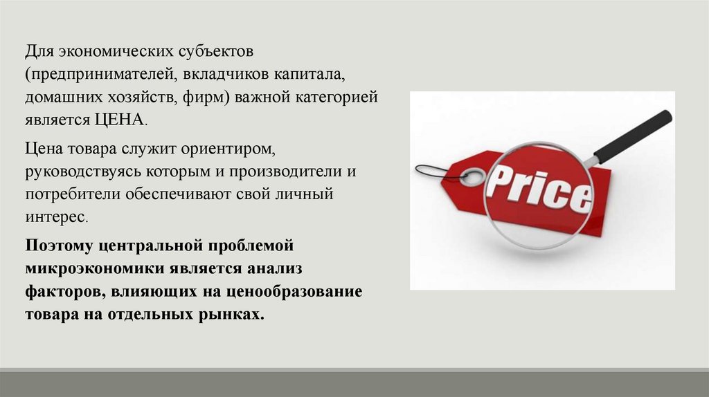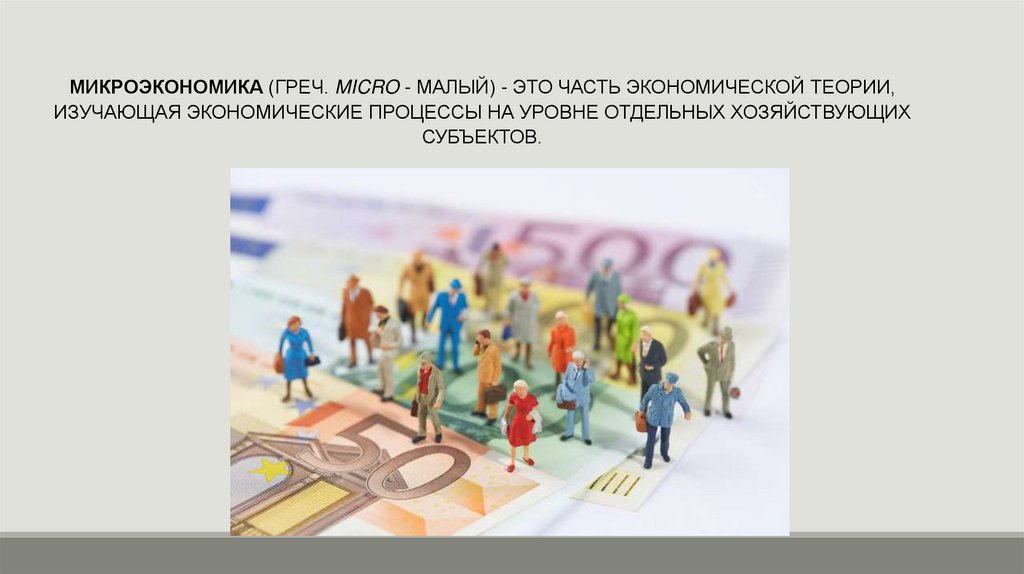 МИКРОЭКОНОМИКА (ГРЕЧ. MICRO - МАЛЫЙ) - ЭТО ЧАСТЬ ЭКОНОМИЧЕСКОЙ ТЕОРИИ,ИЗУЧАЮЩАЯ ЭКОНОМИЧЕСКИЕ ПРОЦЕССЫ НА УРОВНЕ ОТДЕЛЬНЫХ ХОЗЯЙСТВУЮЩИХ