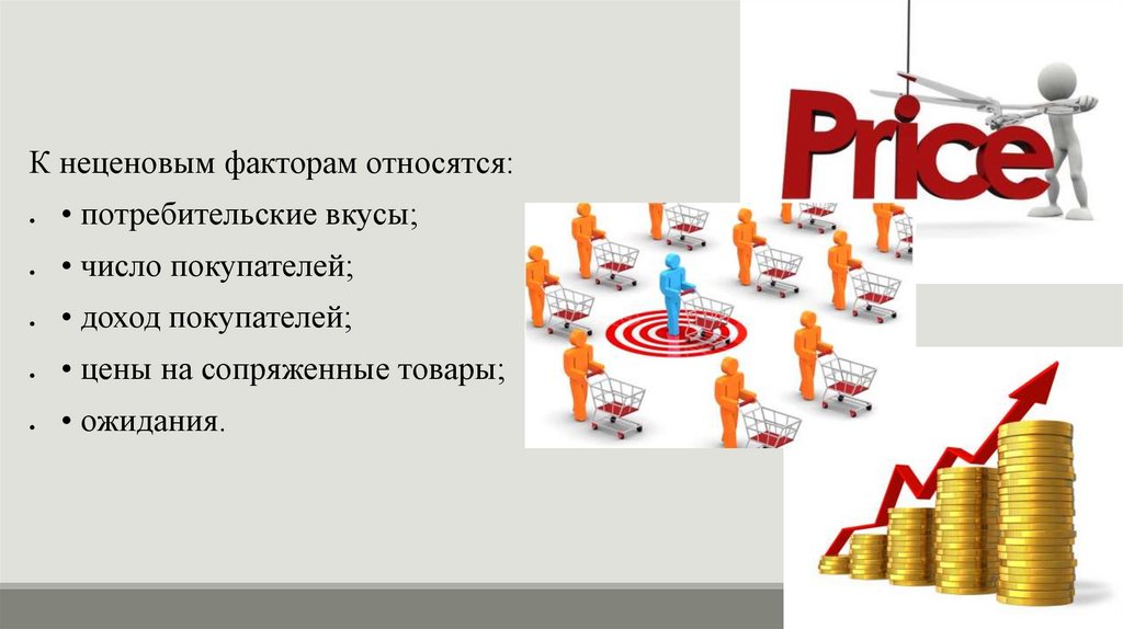 К неценовым факторам относятся:• потребительские вкусы;