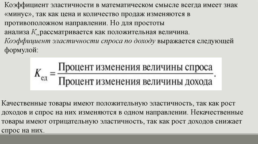 Качественные товары имеют положительную эластичность, так как рост