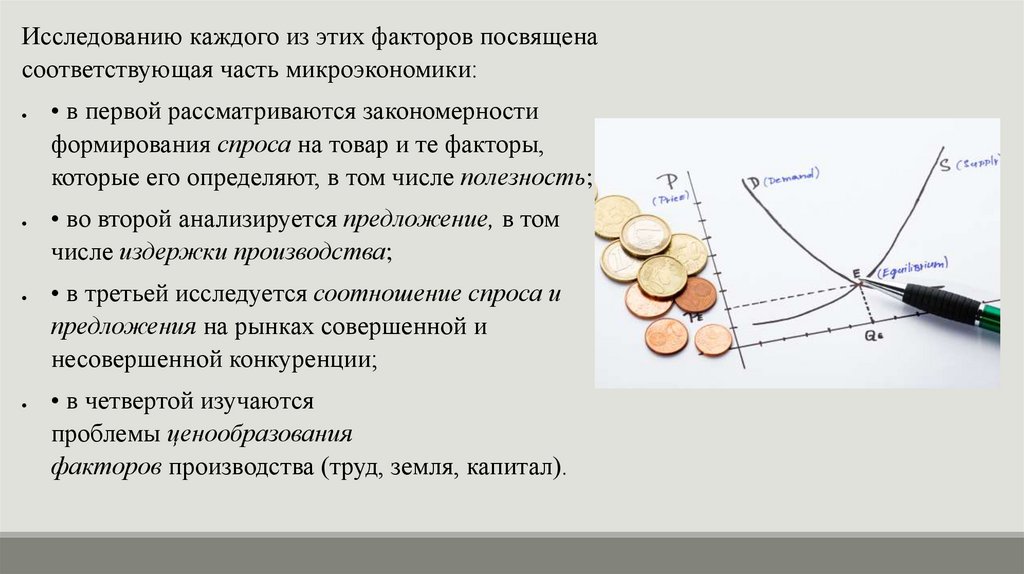 Исследованию каждого из этих факторов посвященасоответствующая часть микроэкономики:
