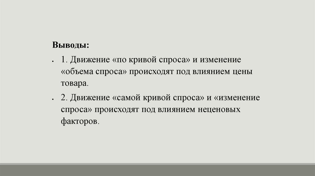 Выводы:1. Движение «по кривой спроса» и изменение