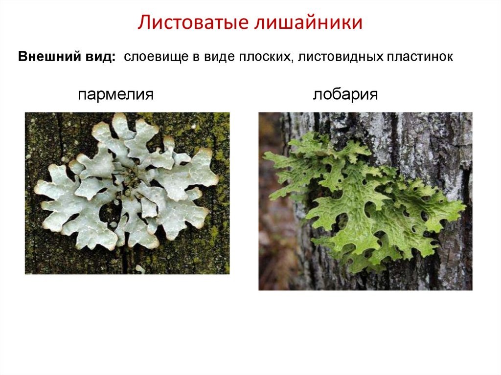 Листоватые лишайникиВнешний вид: слоевище в виде плоских, листовидных пластинок