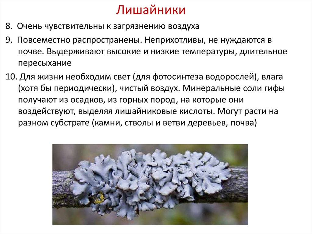 Лишайники8. Очень чувствительны к загрязнению воздуха